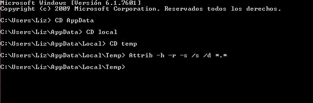 Una vez dentro del directorio teclea en la consola Attrib -h -r -s /s /d *.* para desocultar los elementos y vuelve a la carpeta para borrar finalmente Crypted.vbs