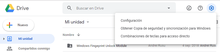 2. Una vez que te encuentres dentro de tu unidad pulsa sobre el icono de engranaje y presiona Configuración.